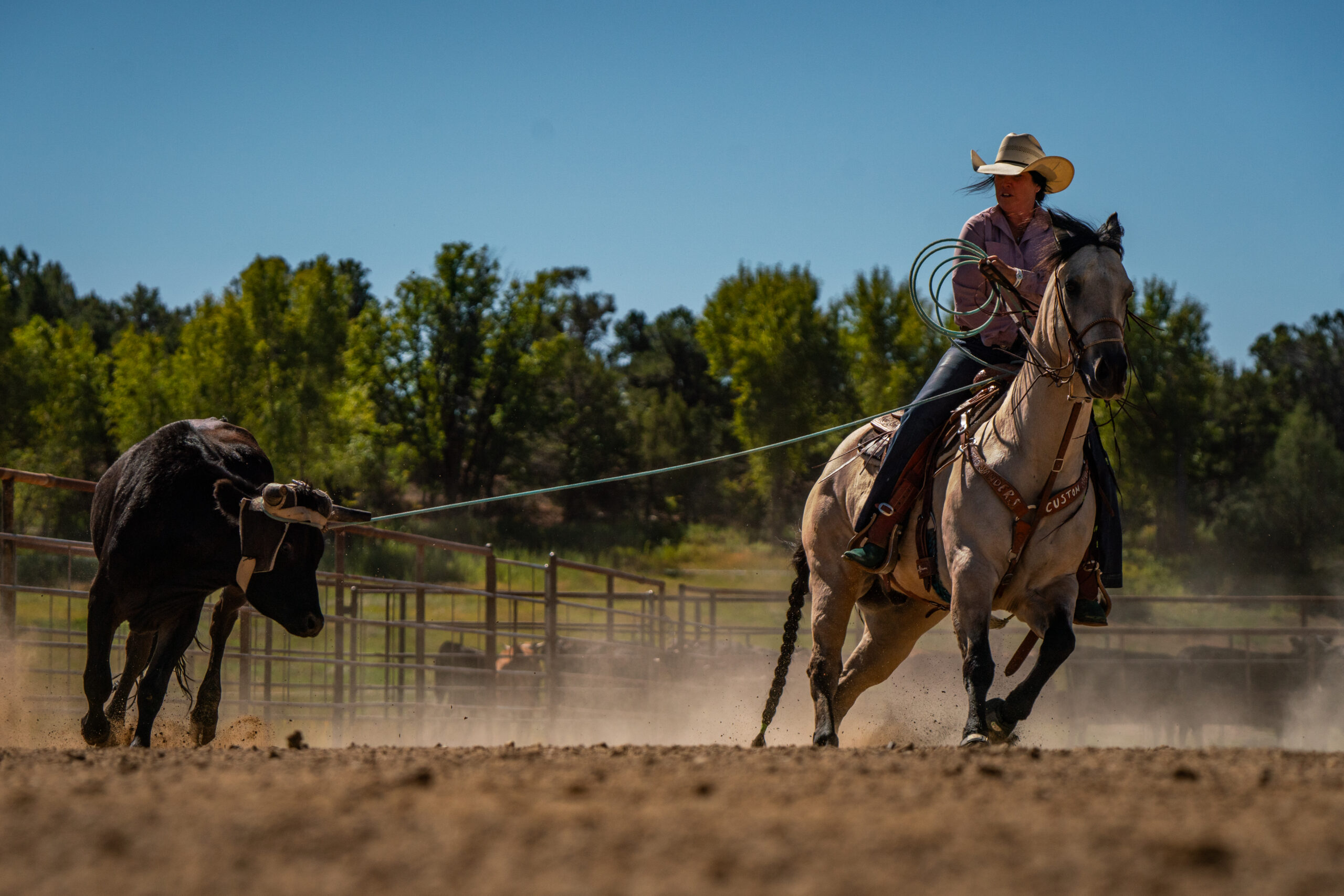 Hollywood has been shown from California to Arizona and is always a gentleman—no nonsense, no buck, just a sweet personality and a Cadillac ride. From branding pens to swimming rivers, he’s steady, willing, and fun.